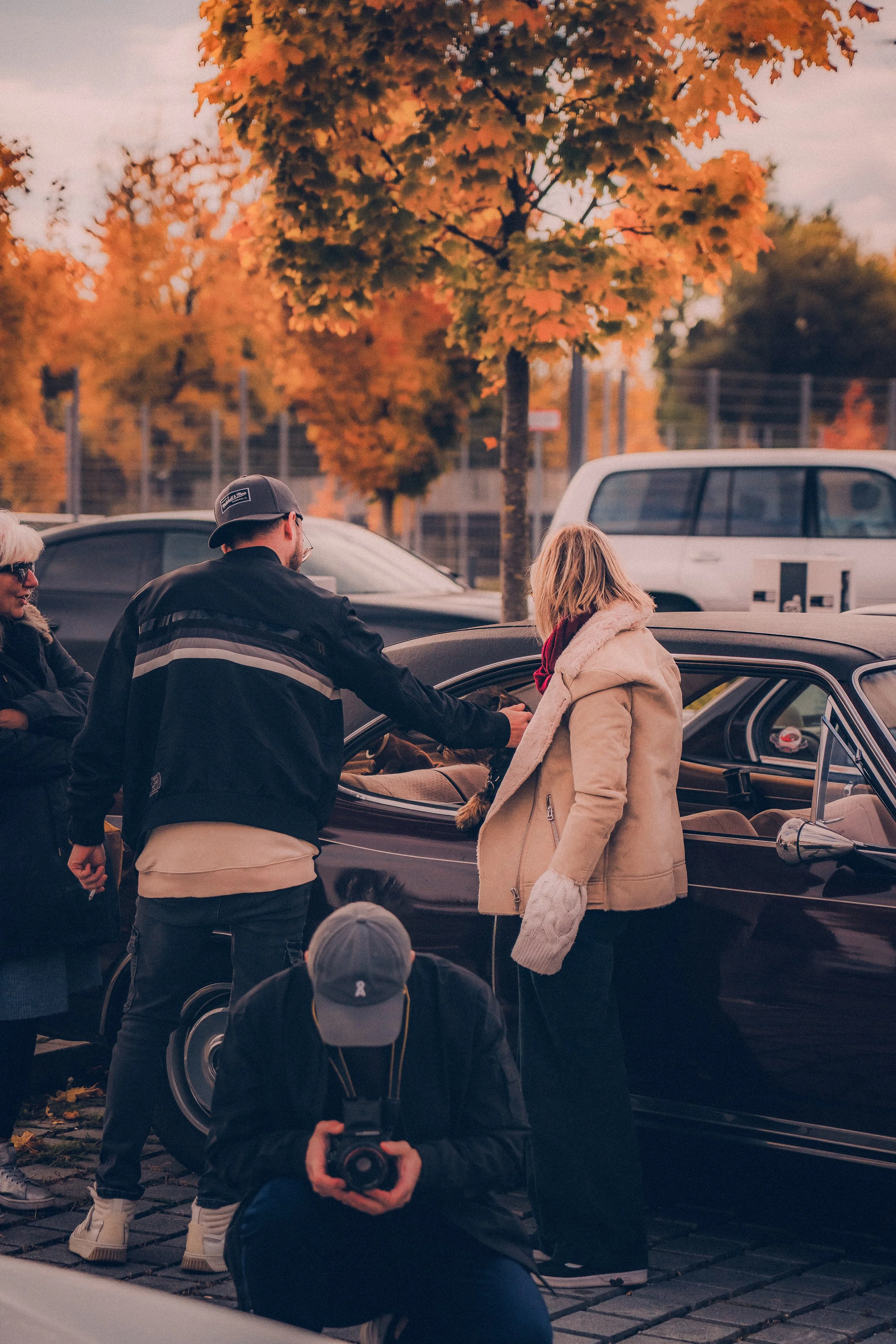Ein stilvolles Treffen, bei dem Fahrzeuge Menschen verbinden.Location